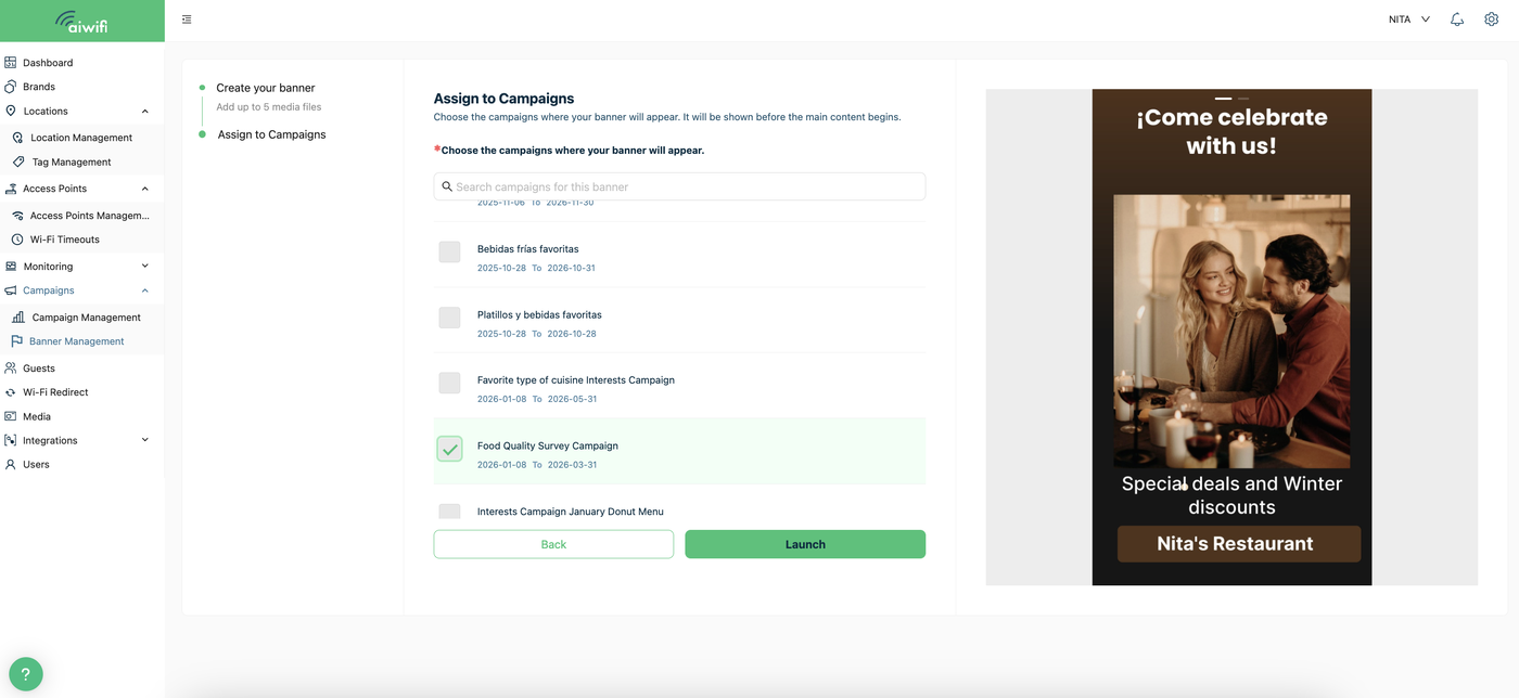 5) Select the campaign desired.- Select the campaign for adding your banner and clic on "Launch"