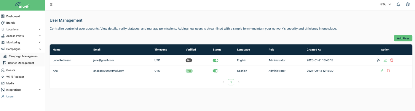 You can add users to the platform to manage and create campaigns.