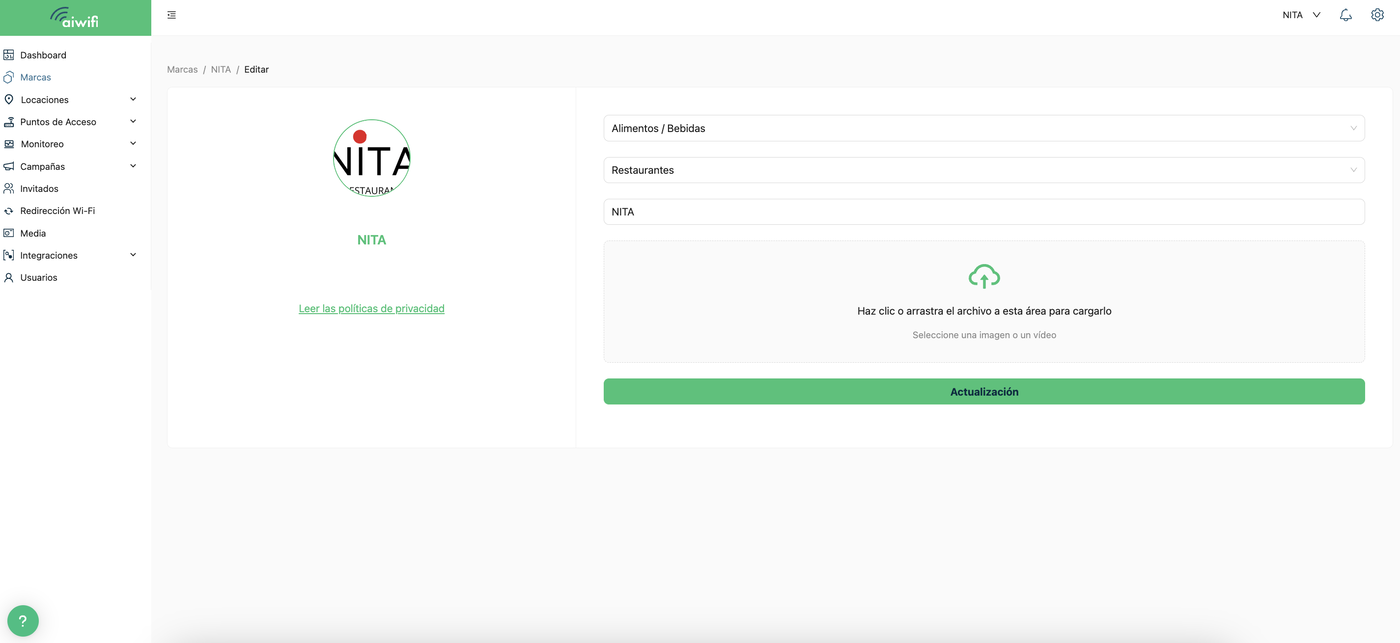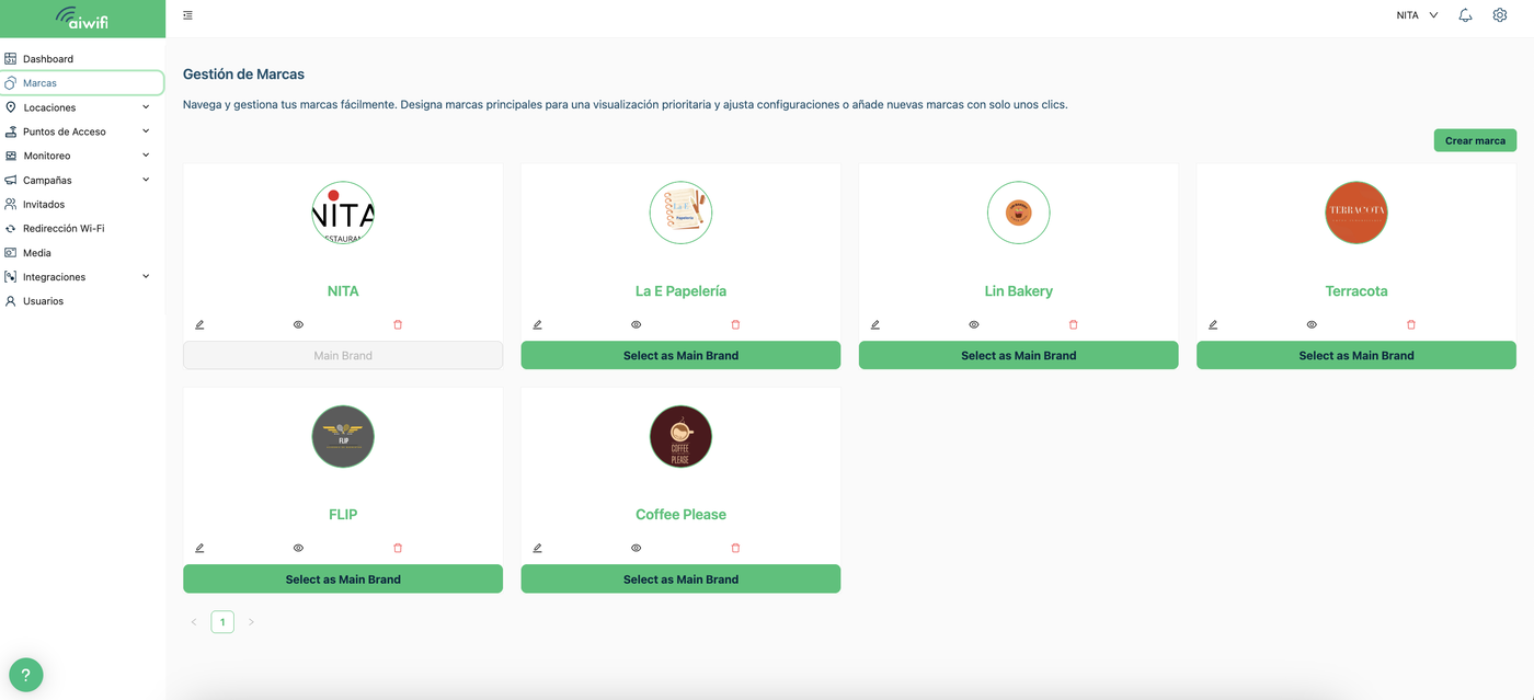 La Marca contiene todo, desde ubicaciones y pintos de acceso, hasta el logotipo, aviso de privacifdad, invitados, usuarios, poprtales cautivos y análisis. esto te permitirá gestionar múltiples negocios con tu cuenta de una manera segura e independiente, asegurando que los negocios se gestionen por separado.