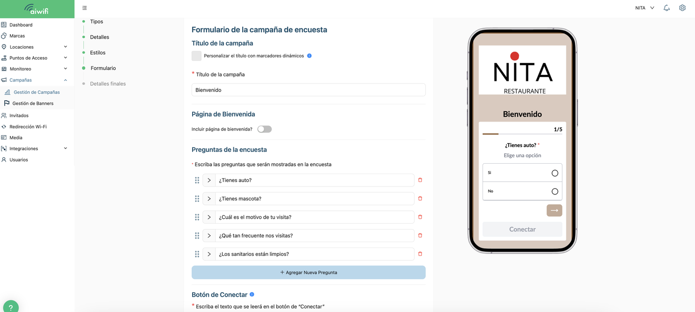 La Campaña Encuesta está diseñada para capturar información valiosa y oportuna directamente de tus invitados sobre tus productos o servicios.