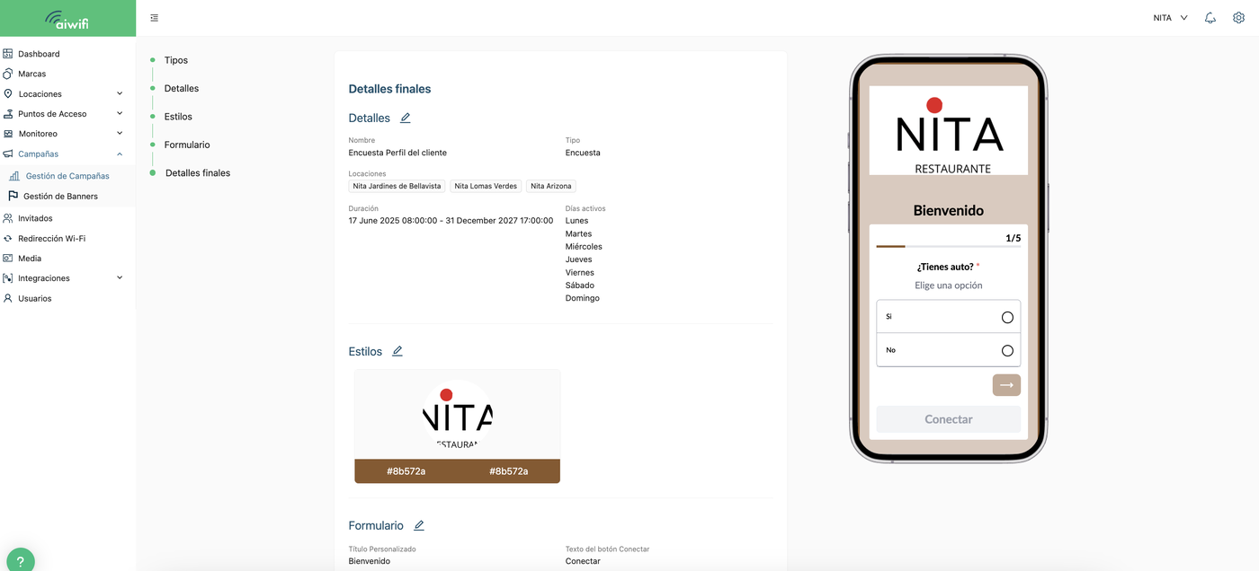 4) Confirma tu Campaña de Encuestas de Estilos y Detalles.- Si estás de acuerdo con todo y no quieres volver atrás, puedes hacer clic en "Guardar la campaña".