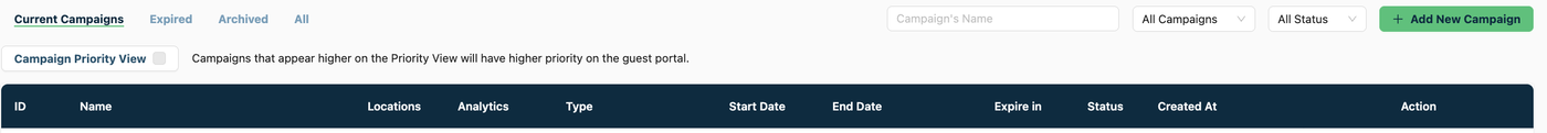 1. Press the button bellow "Status" to disable the Campaign you want to delete.