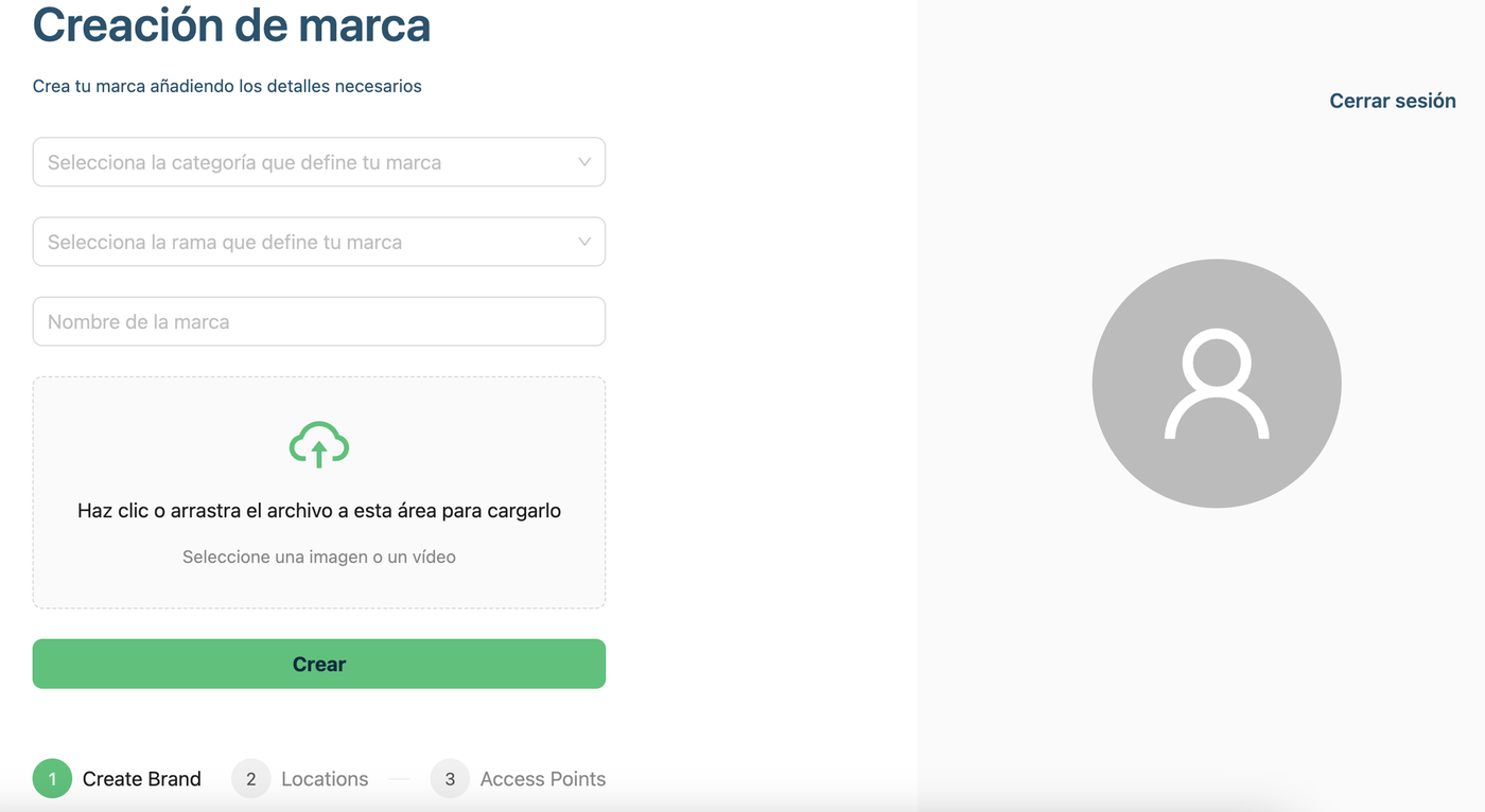 Aquí podrás crear tu marca añadiendo los detalles necesarios como la rama de tu negocio, el nombre de tu marca y el logotipo.