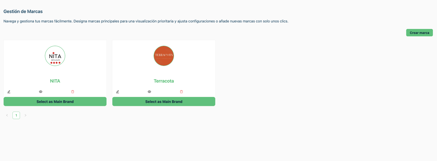 Navega y gestiona tus marcas fácilmente. Designa marcas principales para una visualización prioritaria y ajusta configuraciones o añade nuevas marcas con solo unos clics.