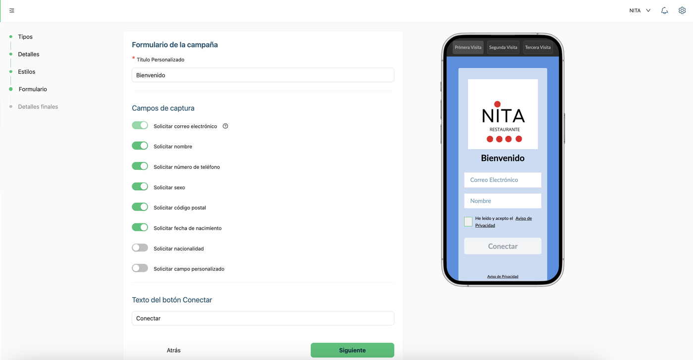 Libera todo el potencial de tu Portal Aiwifi con tu Campaña de Captura de Datos Predeterminada.
