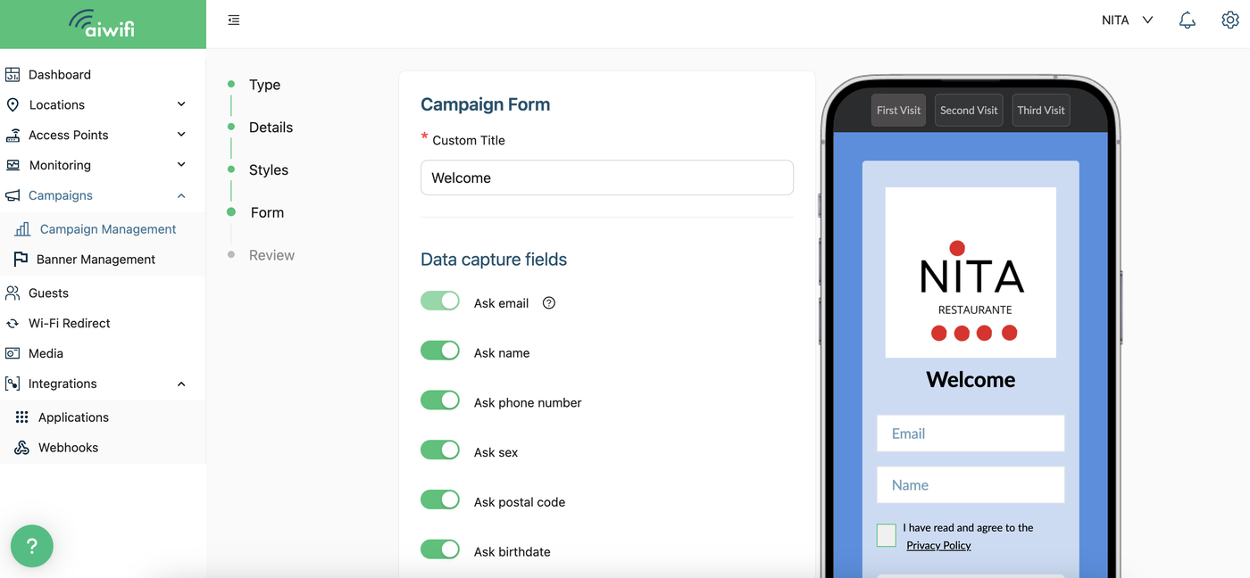 Unleash the full potential of your Aiwifi Portal with your Default Data Capture Campaign.