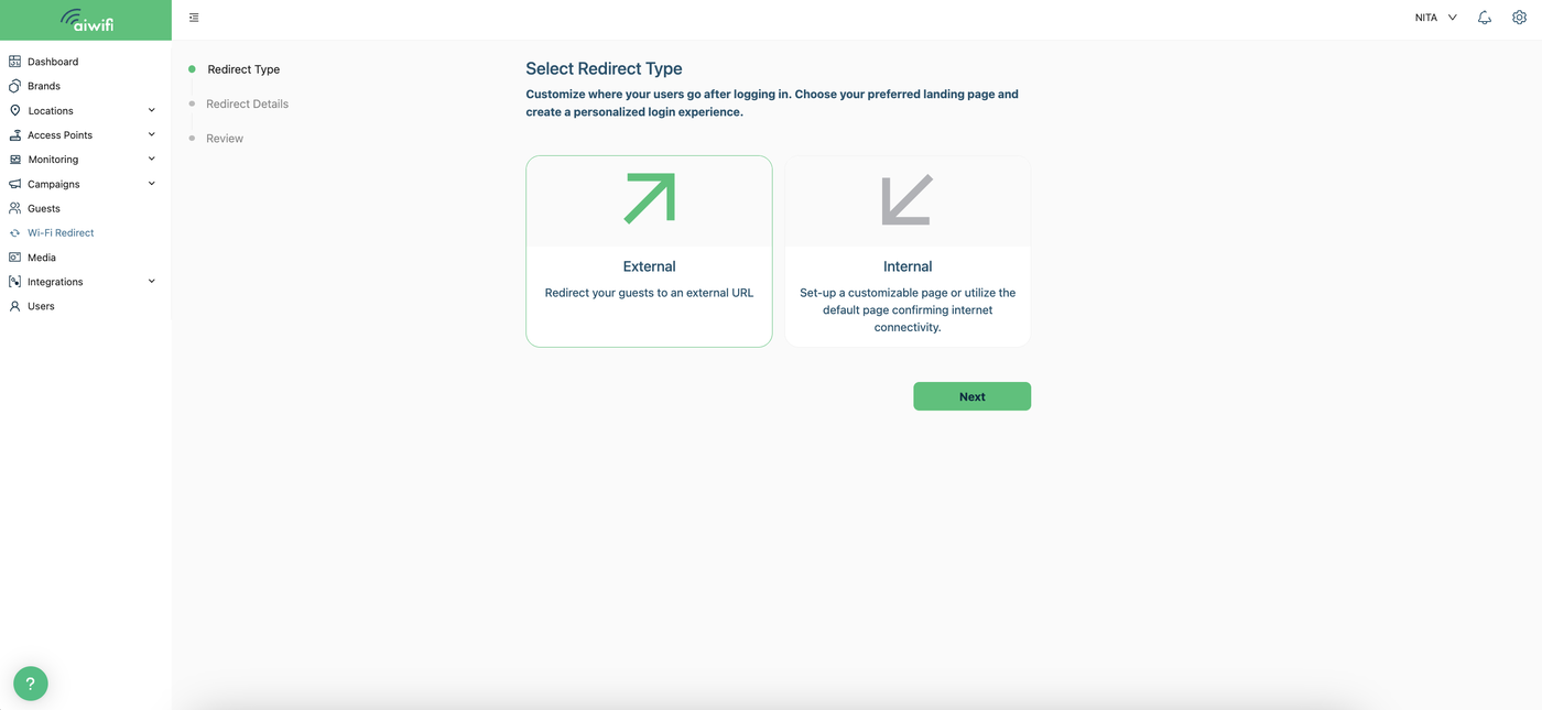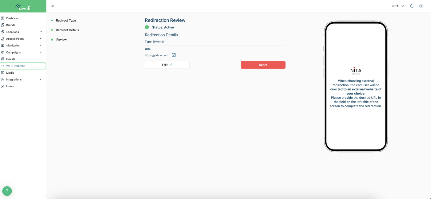 You can take advantage of the portal redirection every time your guest connects to your WiFi network. How that works is: your guest sees the captive portal, answers the campaign and clicks on the connect button. Immediately the guest will be redirected to a URL, this could be an External url or an internal Aiwifi Links Page customized by you!